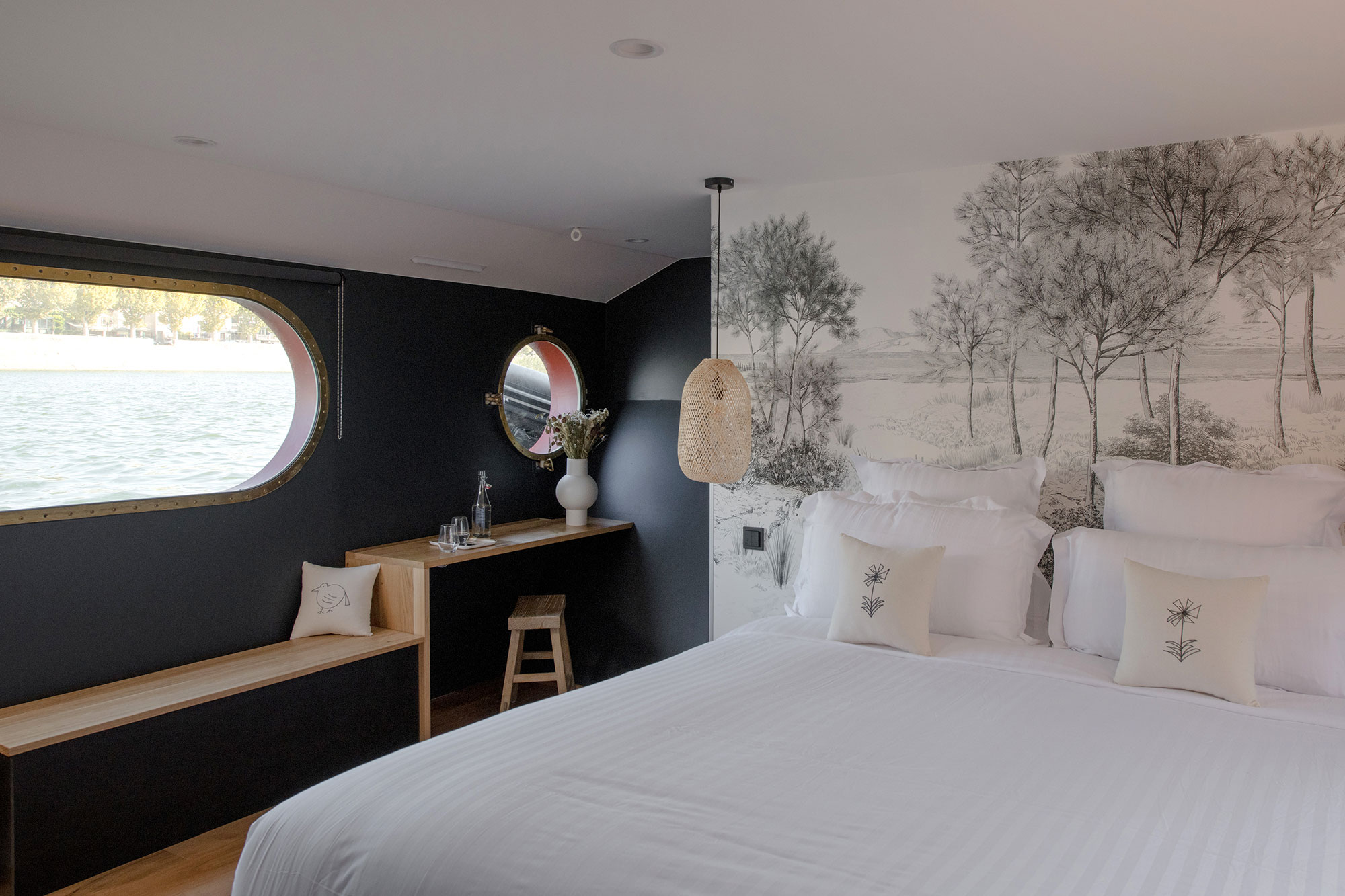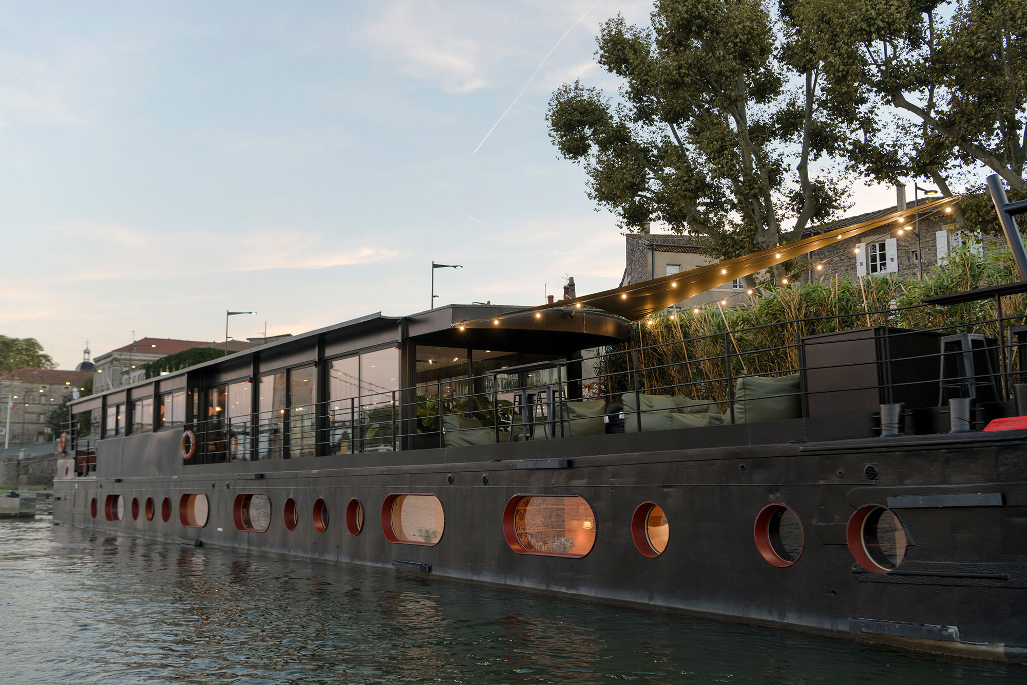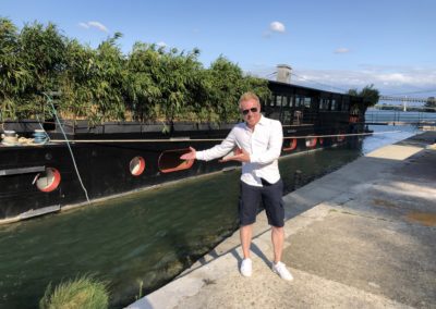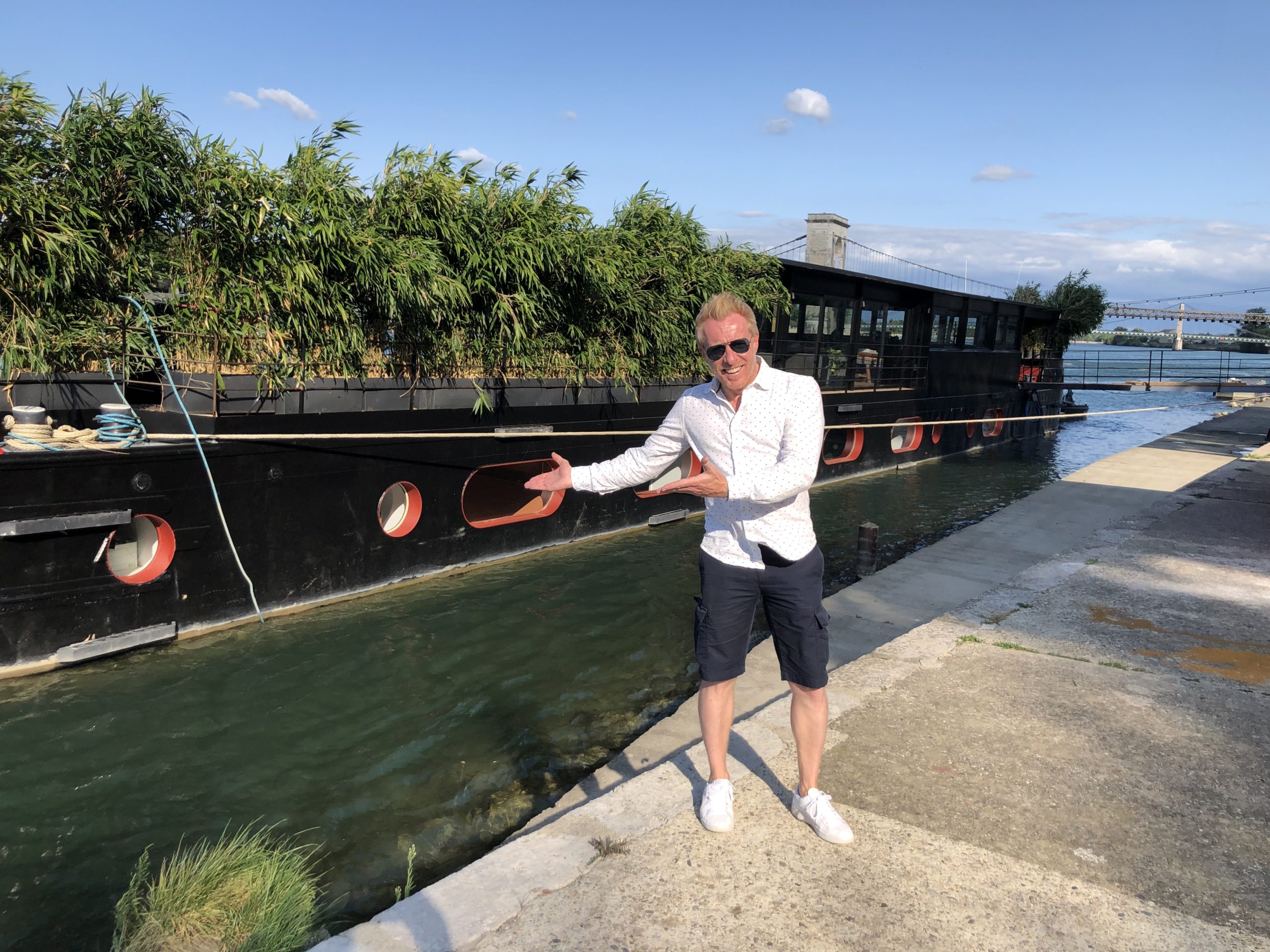 Péniche entièrement climatisée de 300 m2 avec 5 Chambres, Salon Jardin d’Hiver, Cuisine équipée, Terrasses pont avant, Terrasse pont arrière, Bain Nordique, Sauna …